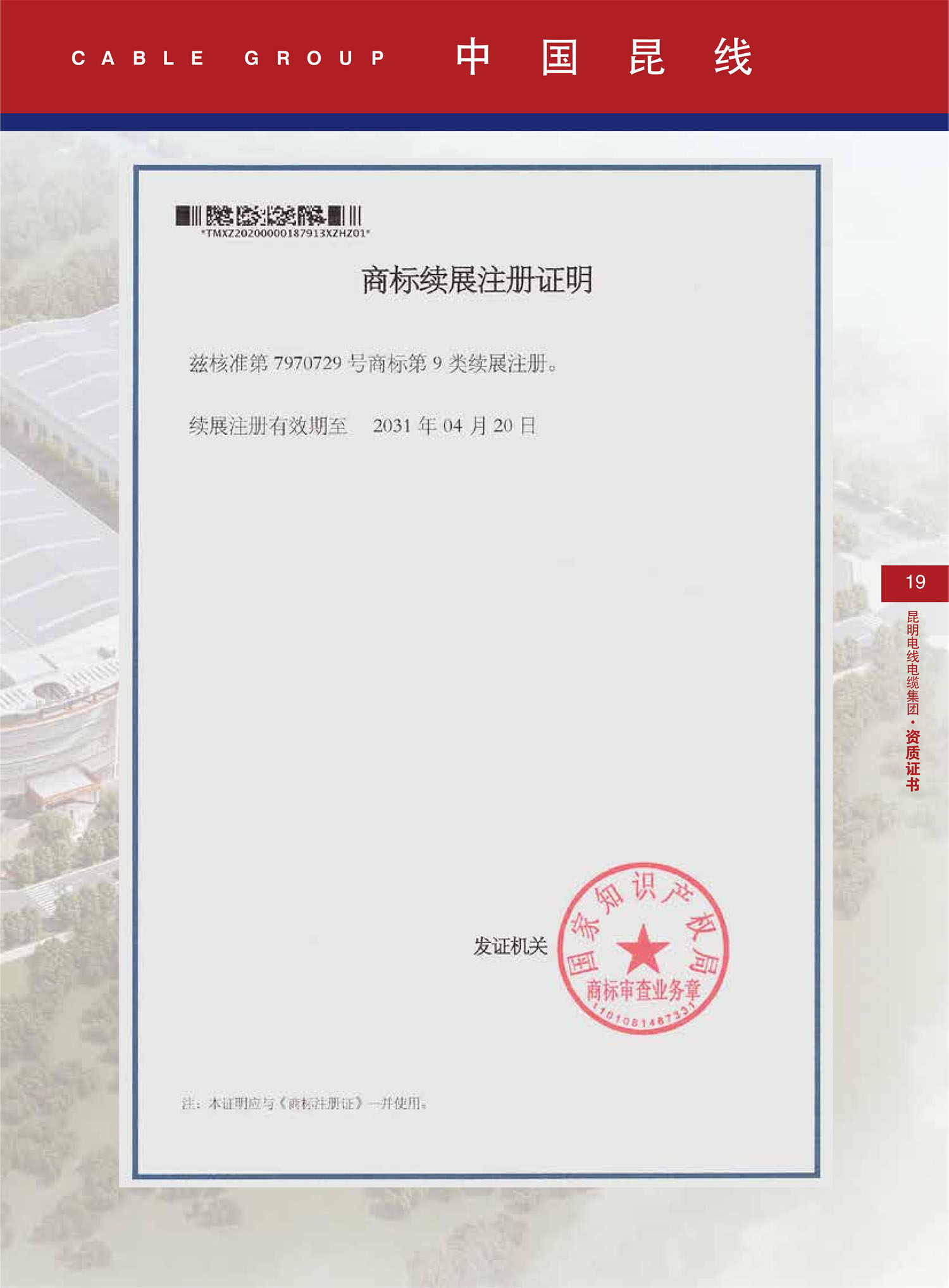 荣誉资质:商标续展注册证